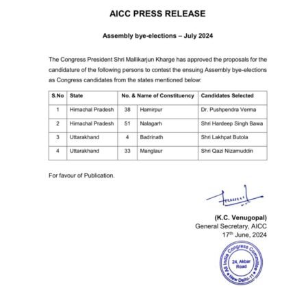 Uttarakhand Bypoll: भाजपा के बाद अब कांग्रेस ने भी उत्तराखंड की बदरीनाथ व मंगलौर सीट से अपने प्रत्याशियों की घोषणा…
