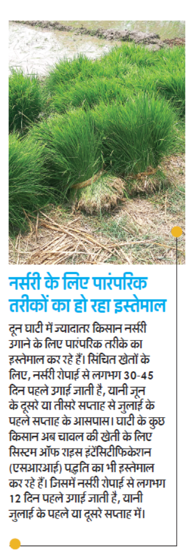 किसान आनंद कुमार कहते हैं, पिछले एक दशक से शहर का वेस्ट नदियों में डाल दिया जा रहा है। इस वजह से नदियां, नहरें दूषित हो गईं। प्रदूषित पानी कार्बनिक पदार्थों से भरपूर होने के कारण पत्तियों की वृद्धि में मदद करता है जिससे पत्तियां गिरने की समस्या होती है। देहरादूनी बासमती का क्षेत्र लिमिटेड है। इसको चाहिए खादर की जमीन। बरसात और प्राकृतिक पानी से यह फसल होती है। पिछले कुछ साल से धान की कीमत नहीं बढ़ी है। यानी, बाजार में कितने में बिक रहा है इसका फायदा किसान को मिल ही नहीं रहा है। 40-45 रुपये किलो के हिसाब से स्थानीय व्यापारी इसे खरीद रहे हैं। लागत बढ़ गई है, मुनाफा न के बराबर हो गया है। इसलिए किसान दूसरी किस्म के बासमती की ओर बढ़ गए हैं। आखिर में उन्हें भी तो अपना घर-परिवार चलाना है।
