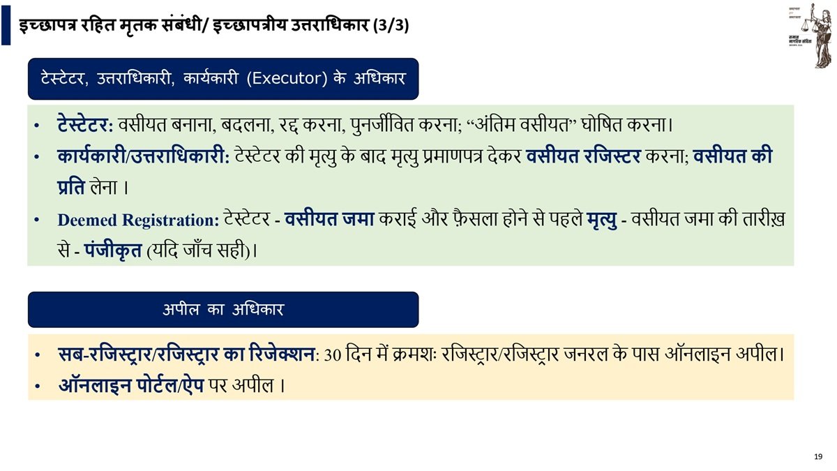 •  कोई व्यक्ति किसी भी व्यक्ति को वसीयत से अपनी संपत्ति दे सकता है।
