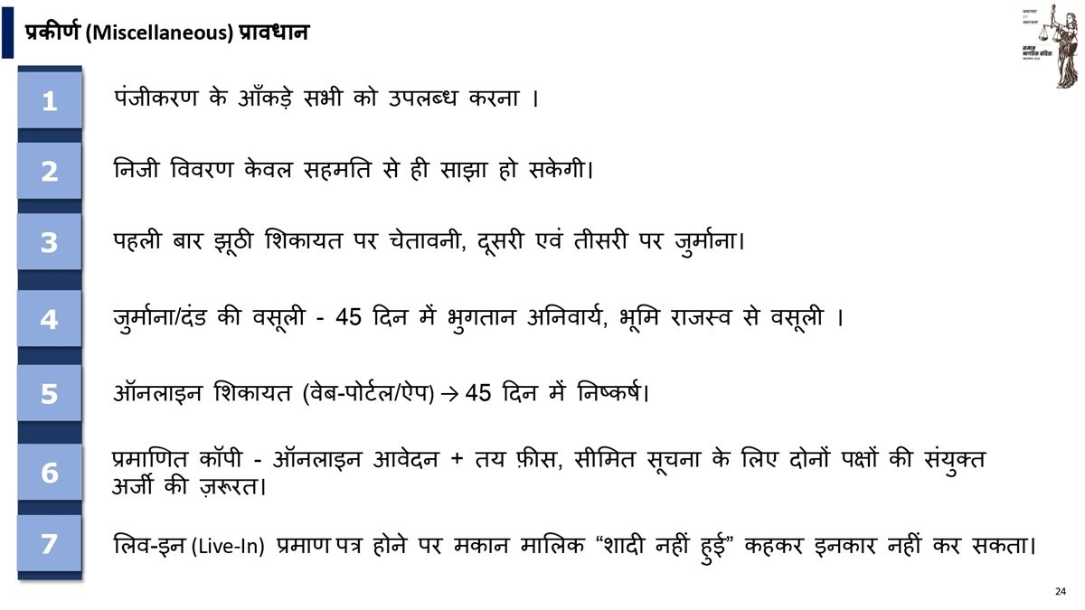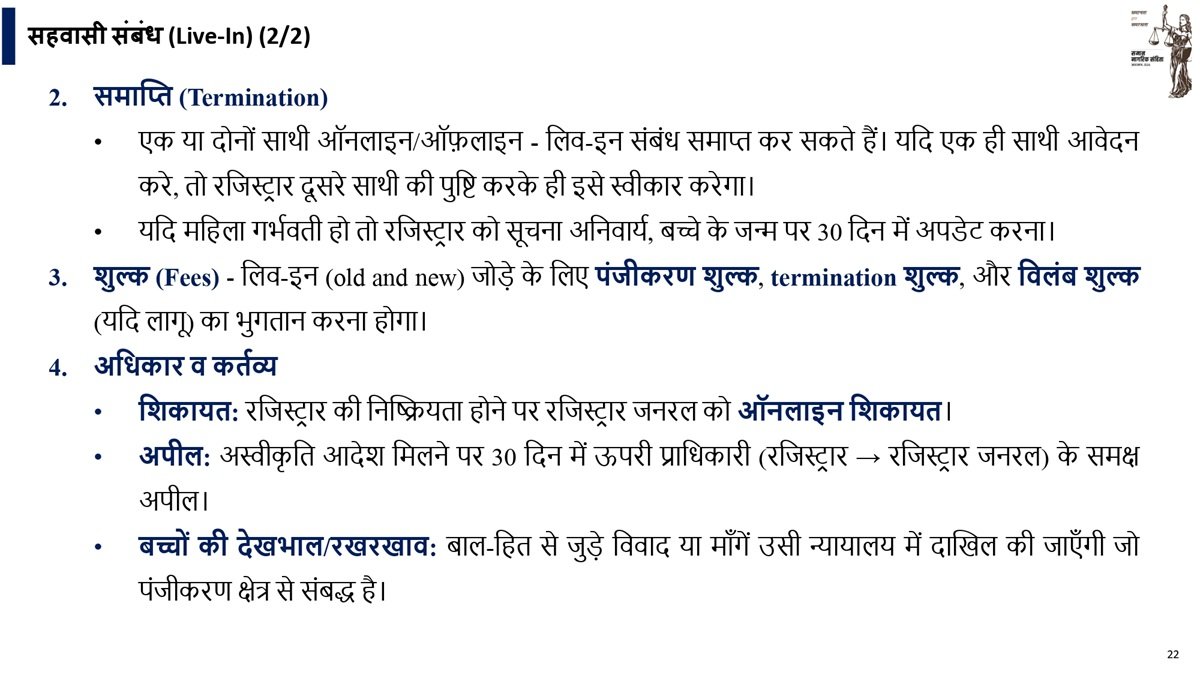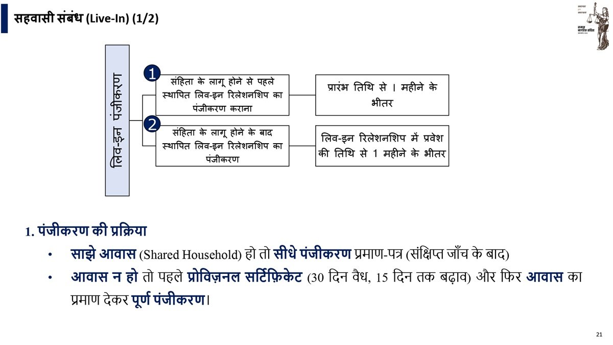 • लिव इन में रहने वाले प्रत्येक व्यक्ति के लिए वेब पोर्टल पर पंजीकरण अनिवार्य होगा।