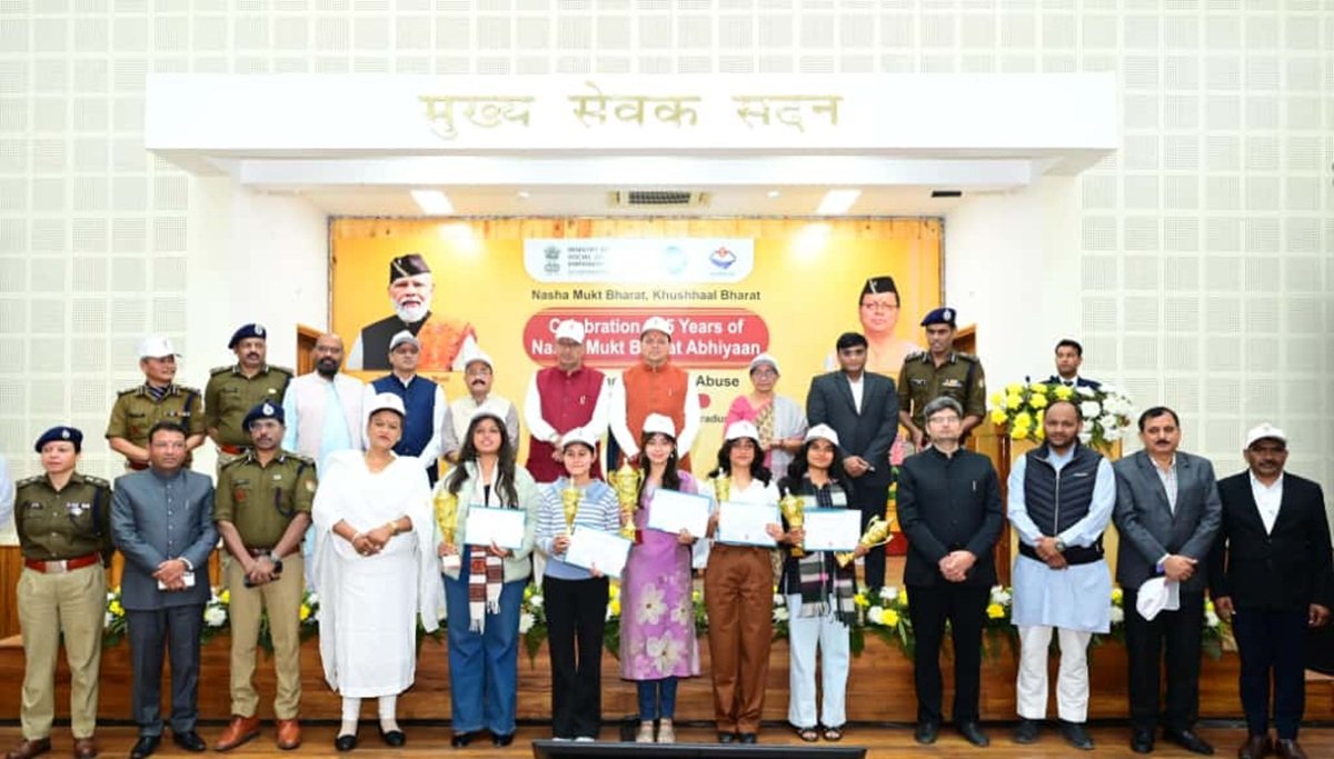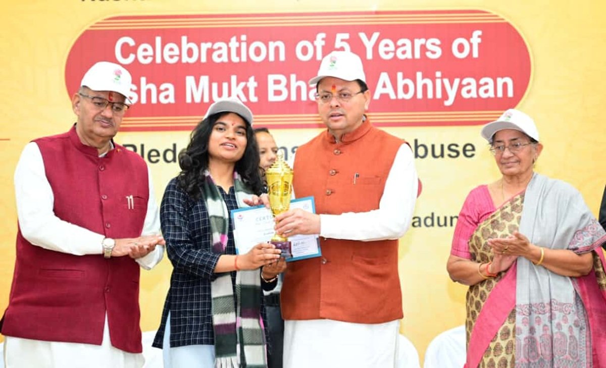कार्यक्रम में सीएम धामी ने बताया कि उत्तराखंड की गौरवशाली पहचान ऐपण कला को भी इस अभियान से जोड़ा गया है, आज नशा-विरोधी संदेशों से सुसज्जित ऐपण पेंटिंग्स हमारे शैक्षणिक संस्थानों और सार्वजनिक स्थलों की शोभा बढ़ा रही हैं। साथ ही युवाओं को नशे से दूर रखने और उनकी ऊर्जा को सकारात्मक दिशा देने के लिए राज्य में दगड़िया क्लब भी बनाए हैं। मुख्यमंत्री ने युवाओं को नशा मुक्त भारत अभियान की शपथ भी दिलाई, साथ ही स्कूल कॉलेजों में राज्य स्तर पर आयोजित भाषण एवं निबंध प्रतियोगिता के विजेताओं को भी सम्मानित किया।