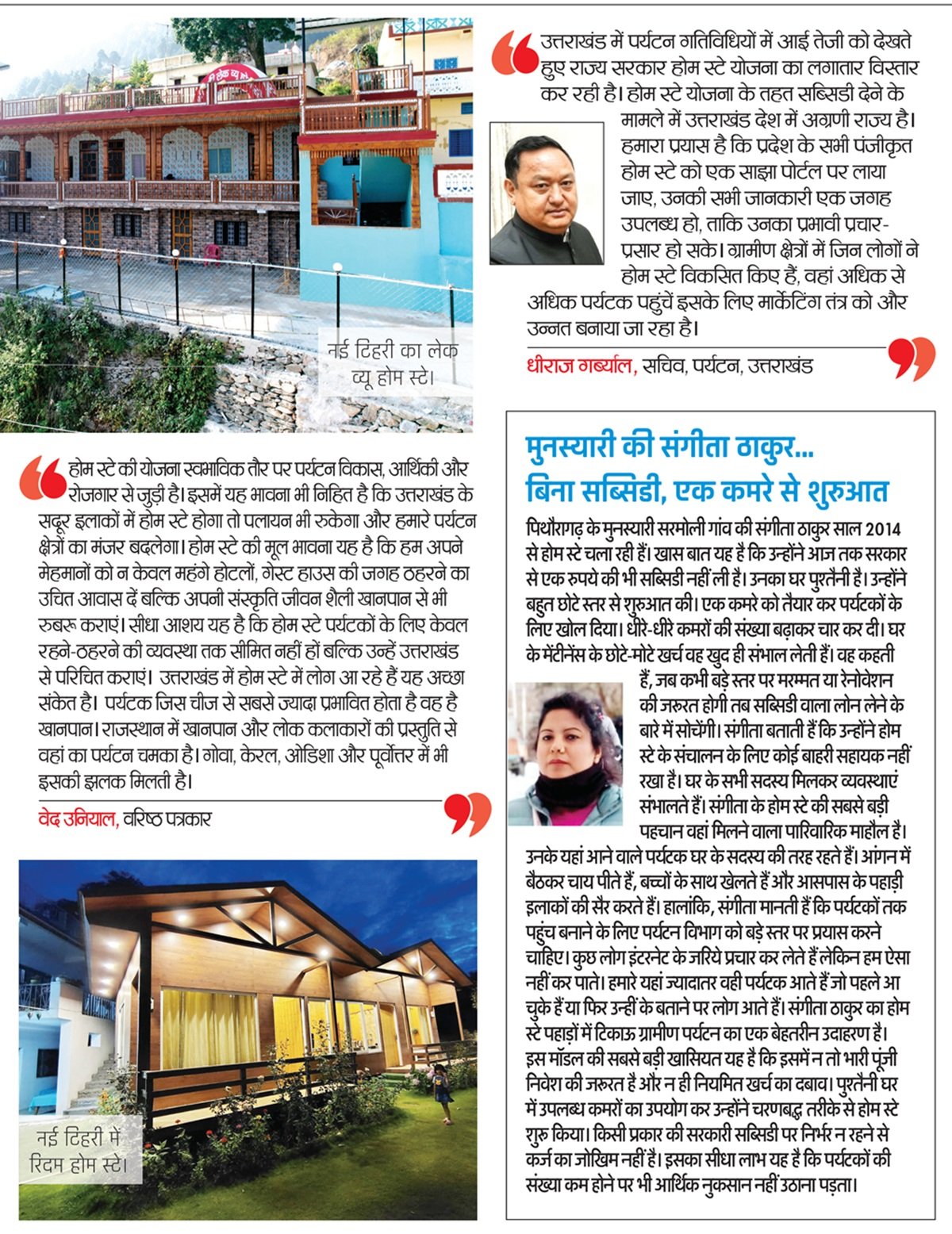 पर्यटकों से सीखे हॉस्पिटैलिटी के गुर : कुलदीप बताते हैं कि शुरुआत में कई व्यावहारिक दिक्कतें आईं। कुछ पर्यटकों ने ही हमें बताया कि कमरा कैसे सजा होना चाहिए। कपड़े कैसे होने चाहिए और सबसे जरूरी हाइजिन यानी साफ-सफाई कितनी अहम होती है। समय के साथ अनुभव बढ़ता गया। अब पर्यटन विभाग की ओर से भी होम स्टे संचालकों को नियमित प्रशिक्षण दिया जा रहा है। गांव की इस पहल को पहचान तब मिली, जब पर्यटन मंत्री सतपाल महाराज तिवाड़ गांव आए और हमारे होम स्टे में ठहरे। उन्होंने मुख्यमंत्री पुष्कर सिंह धामी से बात की। इसके बाद सीएम धामी ने सब्सिडी की राशि बढ़ा दी। इससे न केवल गांव का आत्मविश्वास बढ़ा बल्कि तिवाड़ गांव राज्य में ग्रामीण पर्यटन के एक सफल मॉडल के रूप में उभरकर सामने आया। हमारे गांव को देखते हुए आसपास के गांवों में भी खूब होम स्टे खुले। 637 होम स्टे पूरे टिहरी जिले में चल रहे हैं।