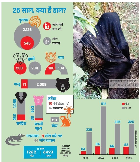 वैसे तो मानव-वन्यजीव संघर्ष का इतिहास सैकड़ों साल पुराना है। दुखद यह है कि दिनों-दिन यह संघर्ष बढ़ता ही जा रहा है। आधुनिक समय में भी मनुष्य ऐसी व्यवस्था नहीं खोज पाया है जिससे यह संघर्ष खत्म हो सके। मनुष्य होने के नाते संघर्ष खत्म करने की जिम्मेदारी हमारी ही है। उत्तराखंड की बात की जाए तो आंकड़े अब डराने लगे हैं। वन्यजीव से संघर्ष में लोगों का जीवन असमय काल का शिकार हो रहा है। उत्तराखंड को वनसंपदा और वन्यजीवों के लिहाज से बेहद समृद्ध माना जाता है। बाघ, गुलदार, हाथी से लेकर अन्य वन्यजीवों का यहां सुरक्षित वासस्थल है लेकिन इंसानों पर हो रहे हमलों को लेकर हालात लगातार चिंताजनक हो रहे हैं। बाघ या गुलदार का प्राकृतिक भोजन जंगल में है। इंसान उसके लिए नई चीज है। उसके बावजूद गुलदारों का आबादी में आकर हमले करना उनके बदलते व्यवहार को दर्शाता है। पूर्व पीसीसीएफ (प्रधान मुख्य वन संरक्षक ) श्रीकांत चंदोला कहते हैं, यह मुद्दा सरकार की प्राथमिकता में है ही नहीं। नहीं तो तकनीक के इस दौर में क्या मुमकिन नहीं है? धीमी आवाज में वह कहते हैं, मरने वाले अधिकांश बेहद गरीब होते हैं। जो पहाड़, गांवों में किसी तरह जीवनयापन करते हैं। शायद इसलिए यह मुद्दा कभी बड़ा नहीं बना। बच्चे, मां-बाप, बेटा-बेटी खोने का गम अखबारों-पत्रिकाओं में खबर पढ़कर नहीं महसूस किया जा सकता।
