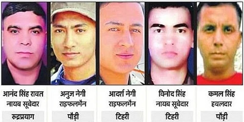 पौड़ी जिले के रिखणीखाल तहसील के दो बेटों हवलदार कमल सिंह और राइफलमैन अनुज नेगी ने अपना सर्वोच्च बलिदान दिया है। दोनों जवान अपने घरों के इकलौते चिराग थे। देर शाम उनका पार्थिव शरीर पहले जौलीग्रांट एयरपोर्ट और फिर कोटद्वार लाया गया। कोटद्वार बेस अस्पताल में पूरे सैन्य सम्मान के साथ लाए गए पार्थिव शरीरों पर लोगों ने पुष्पांजलि अर्पित कर भारत माता के जयघोष लगाए। दोनों बलिदानियों का अंतिम संस्कार उनके पैतृक घाट मंदाल नदी के तट पर बंजा देवी व टांडा महादेव पर राजकीय व सैनिक सम्मान के साथ किया गया। रुद्रप्रयाग के नायब सूबेदार आनंद सिंह रावत का अंतिम संस्कार बुधवार को पैतृक घाट सूर्यप्रयाग में किया गया।