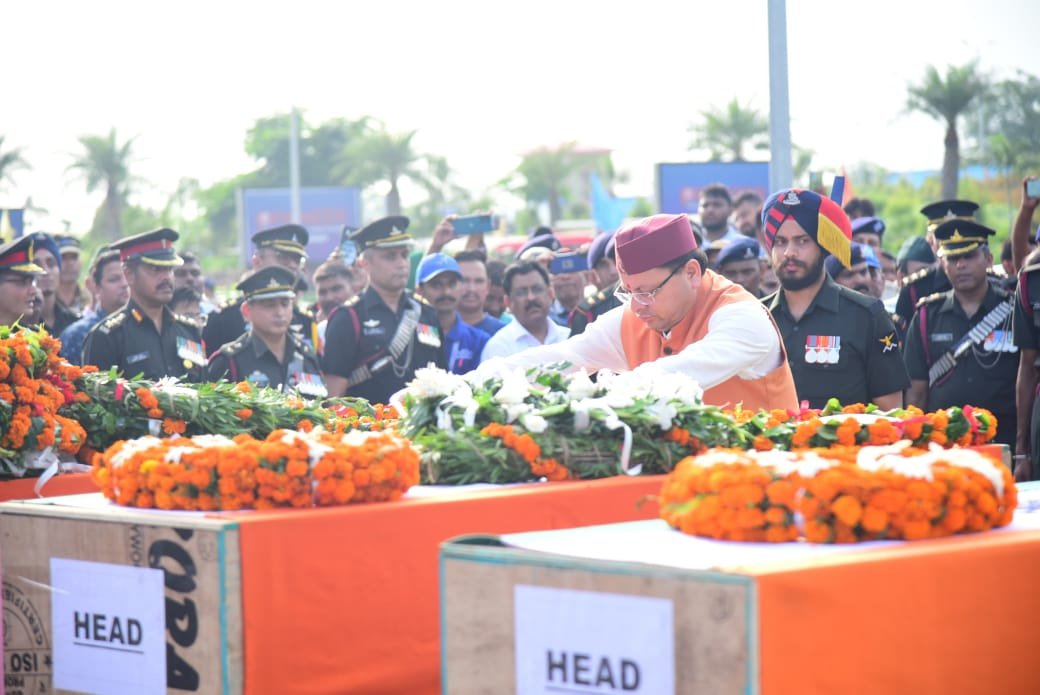इससे पहले पांच जवानों के पार्थिव शरीर देहरादून पहुंचाए गए। जौलीग्रांट एयरपोर्ट पर बलिदानियों को गार्ड ऑफ ऑनर दिया गया। मुख्यमंत्री पुष्कर सिंह धामी और सेना के अधिकारियों ने बलिदानियों के पार्थिव शरीर पर पुष्प अर्पित कर श्रद्धांजलि दी। इसके बाद जवानों के पार्थिव शरीर उनके घर भेजे गए। पूर्व सीएम व सांसद त्रिवेंद्र सिंह रावत, कैबिनेट मंत्री प्रेमचंद अग्रवाल, गणेश जोशी, विधायक बृज भूषण गैरोला, डीएम, एसएसपी ने भी जवानों को श्रद्धांजलि दी। बता दें कि आतंकी हमले में कीर्तिनगर ब्लॉक के थाती डागर निवासी राइफलमैन आदर्श नेगी, रुद्रप्रयाग निवासी नायब सूबेदार आनंद सिंह, लैंसडौन निवासी हवलदार कमल सिंह, टिहरी गढ़वाल निवासी नायक विनोद सिंह, रिखणीखाल निवासी राइफलमैन अनुज नेगी बलिदान दिया। सीएम धामी ने कहा कि यह हम सभी प्रदेशवासियों के लिए अत्यंत पीड़ा का क्षण है क्योंकि हमने भाई और बेटा भी खोया है। हमारे रणबांकुरों ने उत्तराखंड की समृद्ध सैन्य परंपरा का पालन करते हुए मां भारती के चरणों में अपना सर्वस्व न्योछावर कर दिया। इस कायरतापूर्ण हमले के दोषी, मानवता के दुश्मन आतंकवादी किसी भी कीमत पर बख्शे नहीं जाएंगे और इनको पनाह देने वाले लोगों को भी इसके परिणाम भुगतने होंगे।