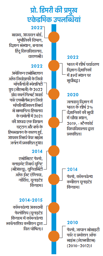 Prof. A P Dimri को वर्ष 2022 में भारतीय भूचुंबकत्व संस्थान का निदेशक नियुक्त किया गया। भारतीय उपमहाद्वीप क्षेत्र में भू-चुंबकत्व के ज्ञान का प्रचार-प्रसार करने में यह संस्थान 1971 से महत्वपूर्ण भूमिका निभा रहा है। यह विज्ञान एवं प्रौद्योगिकी विभाग, भारत सरकार के अंतर्गत काम करता है। प्रोफेसर डिमरी जवाहर लाल नेहरू विश्वविद्यालय के स्कूल ऑफ इनवॉयरमेंटल साइंसेज में प्रोफेसर रहेके हैं। प्रारंभिक शिक्षा गोपेश्वर, पिथौरागढ़, उत्तरकाशी से हुई। इसके बाद उन्होंने बनारस हिंदू विश्वविद्यालय से 1989 में बीएससी (फिजिक्स) से की। उन्होंने बीएचयू से ही 1992 में एमएससी जियोफिजिक्स (मौसम विज्ञान) की शिक्षा प्राप्त की। 1994 में उन्होंने जेएनयू से एनवायरमेंटल साइंस में एमफिल किया। डिमरी ने आईआईटी दिल्ली से अपनी पीएचडी एटमोस्फेरिक साइंसेज में की। वह अप्रैल 1994 से 2008 के बीच रक्षा अनुसंधान एवं विकास संगठन (डीआरडीओ) में स्नो एंड एक्लांच साइंटिस्ट भी रहे। जापान के नगोया स्थित हाइड्रो फेरिक एटमॉस्फेरिक रिसर्च सेंटर में सितंबर 2010 से अगस्त 2012 तक अनुसंधानकर्ता रहे हैं। उनके शोध के विषयों में क्षेत्रीय जलवायु गतिशीलता, बदलाव एवं परिवर्तनशीलता, जलवायु एवं जलवायु परिवर्तन का विज्ञान, भारत का शीतकालीन मानसून एवं पश्चिमी विक्षोभ है। उन्होंने पहाड़ों पर अलग-अलग जगहों के तापमान का अध्ययन करने के लिए एक नई विधि सामने रखी है। वह कहते हैं, वैज्ञानिक किसी चुनौती का सॉल्यूशन बता सकते हैं। उन पर अमल करना सरकार का काम है।