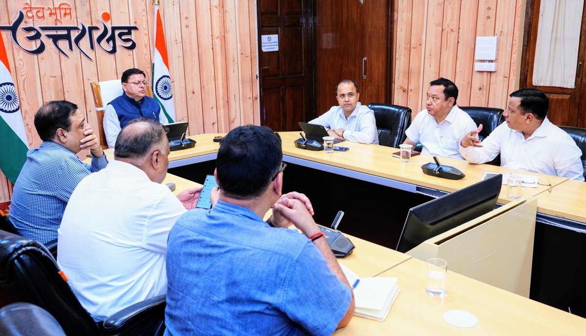 अधिकारियों के साथ सोमवार को बैठक करते सीएम धामी।